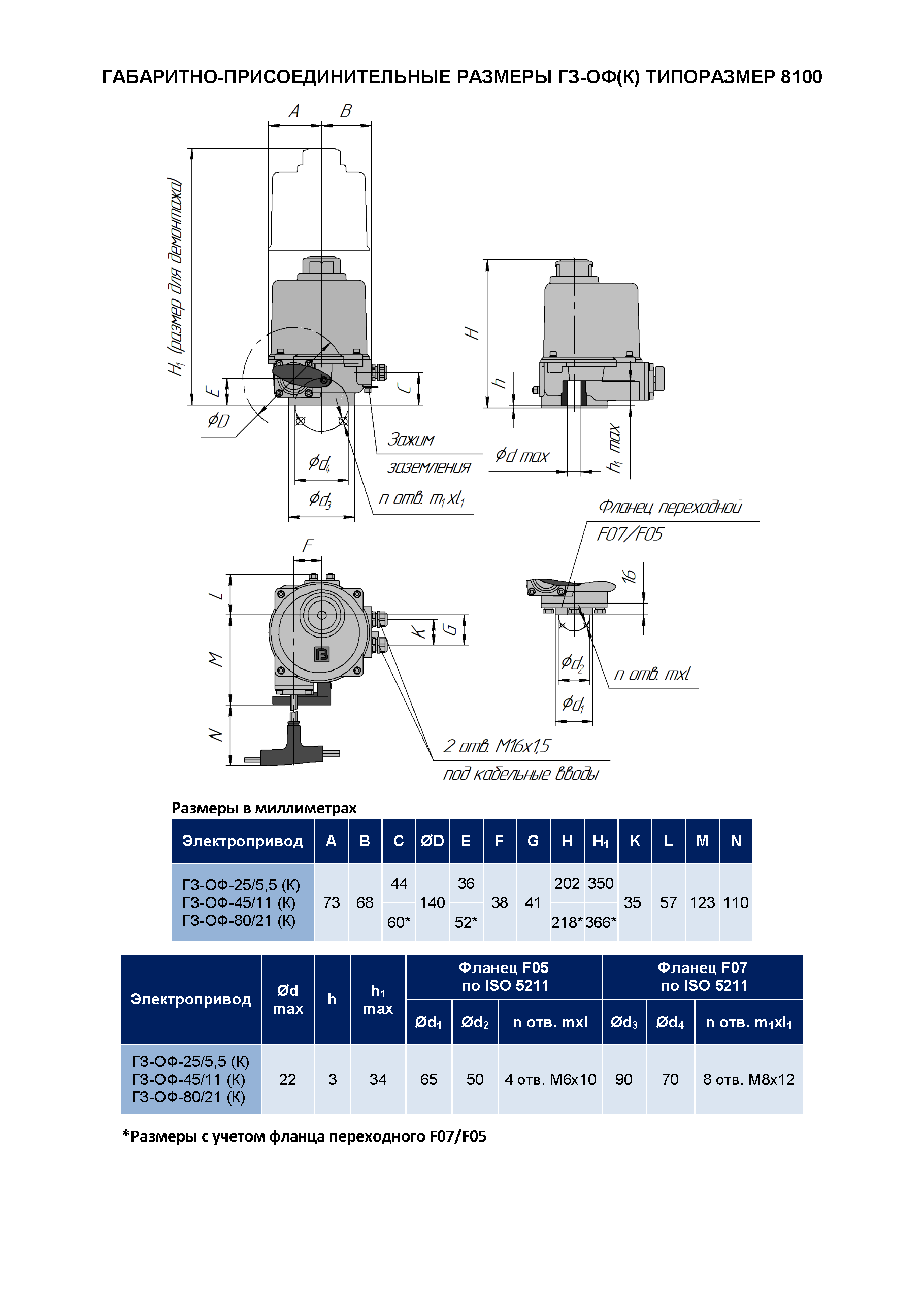 Компактные неполнооборотные электроприводы общепромышленного исполнения ГЗ-ОФ (К) изготавливаются по техническим условиям ГРЛЕ.421321.001ТУ. Электроприводы соответствуют требованиям технических регламентов ТР ТС 004/2011 «О безопасности низковольтного оборудования» и ТР ТС 020/2011 «Электромагнитная совместимость технических средств» размеров.