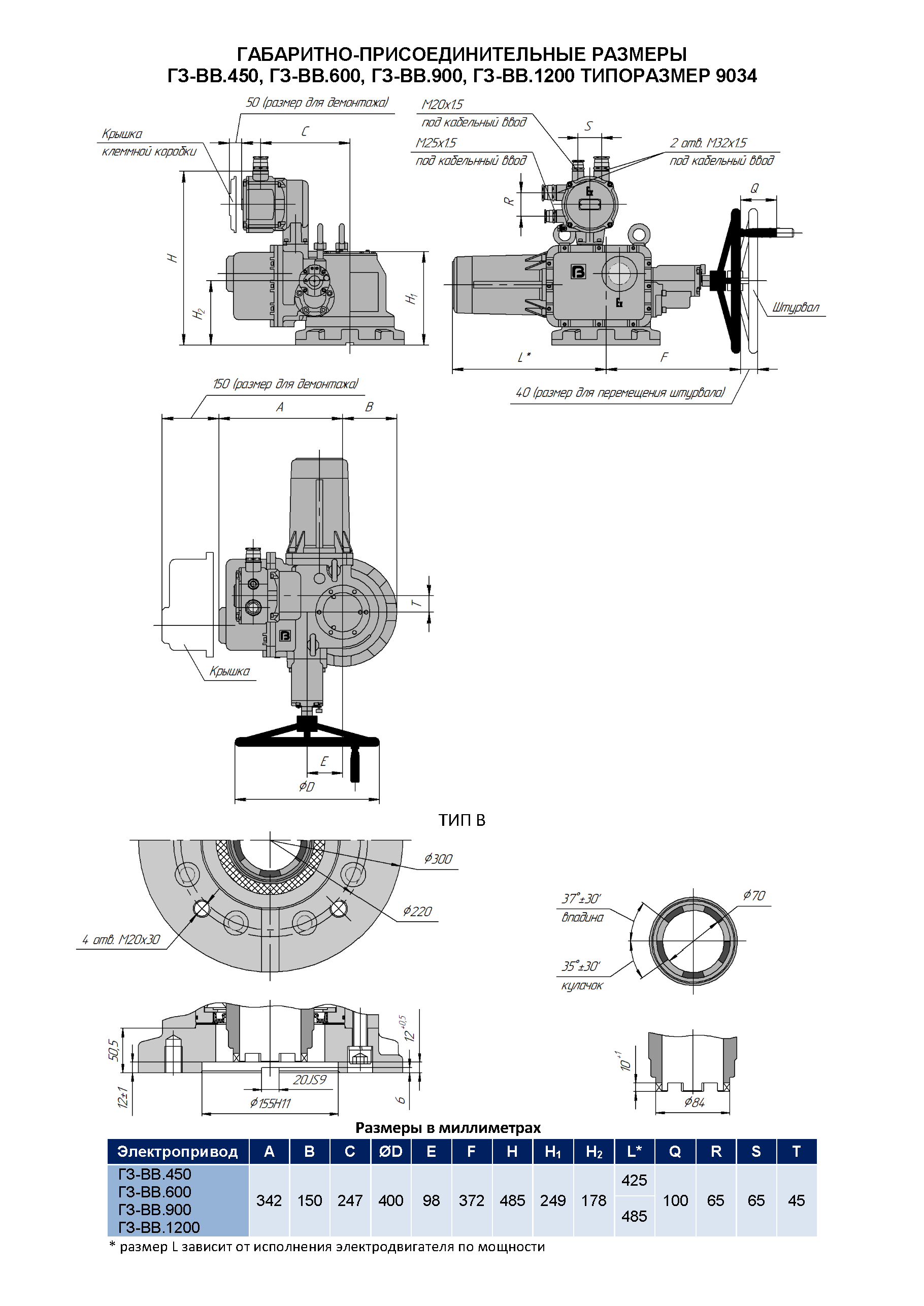 Электропривод многооборотный взрывозащищенного типа ГЗ-ВВ изготавливается по техническим условиям ГРЛЕ.421322.004ТУ, в соответствии с ГОСТ 31610.0-2019, ГОСТ 31441.1-2011, ГОСТ IEC 60079-14-2013.